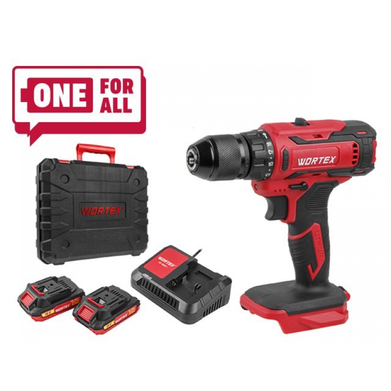 Аккумуляторная дрель-шуруповерт входит в линейку WORTEX ALL1 на одном аккумуляторе.
