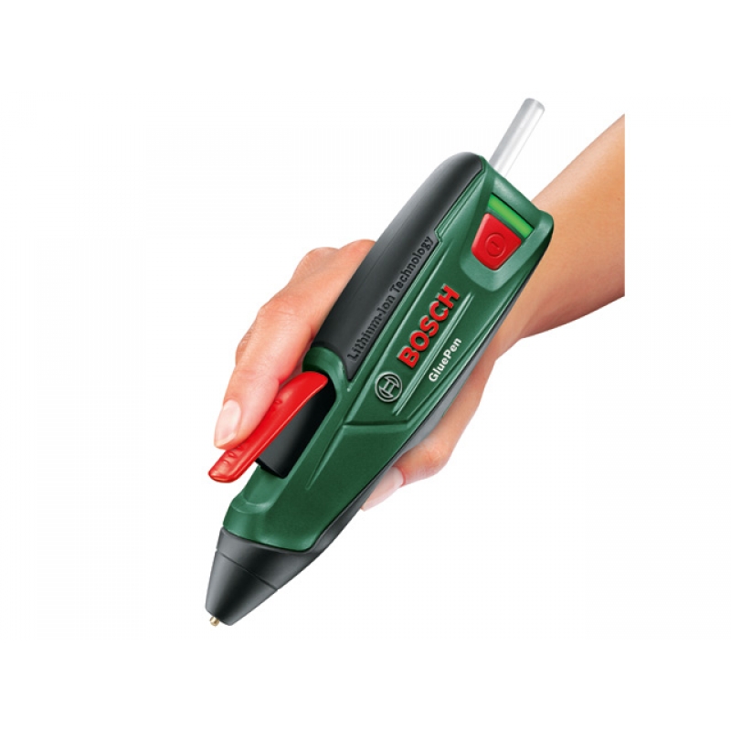 GluePen от компании Bosch - это миниатюрная аккумуляторная клеевая ручка для хобби и мелкого ремонта по дому. Эргономичная форма ручки (модель лежит в руке, как обычная авторучка) обеспечивает комфортную и точную работу. Благодаря тому, что все нагревательные элементы надежно скрыты под прочным пластиковым корпусом, с клеевой аккумуляторной ручкой могут работать даже дети под присмотром родителей.