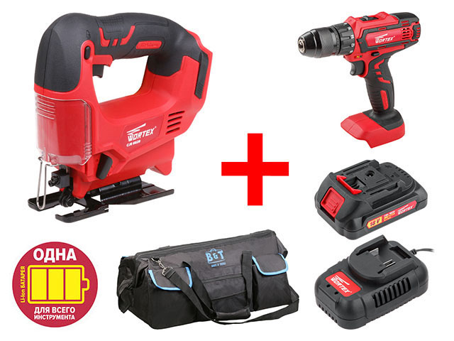 Аккум. лобзик WORTEX CJS 6529 в кор. ALL1 + АКЦИЯ (комплект с шуруповерт, акб, зу и сумка со скидой) (18.0 В, В комплекте с шуруповертом, аккумуляторо