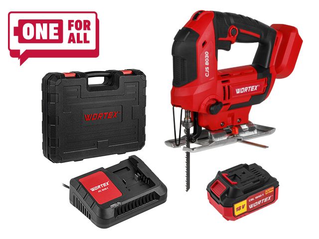 Аккум. лобзик WORTEX CJS 8030 в чем. ALL1 МЕГА АКЦИЯ 18 В, 500-3000 об/мин, 85 мм, 1х4 А*ч