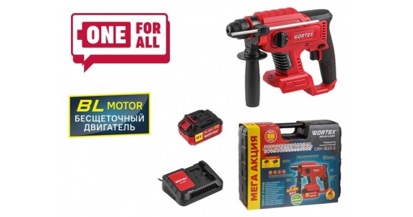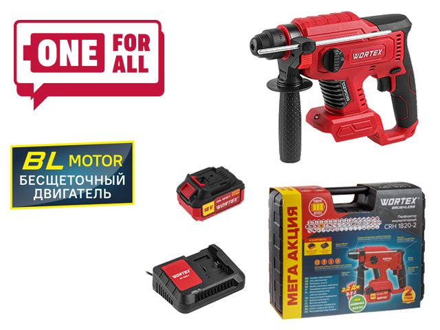 Аккум. перфоратор WORTEX CRH 1820-2 в чем. ALL1 МЕГА АКЦИЯ БЕСЩЕТ., 18 В, 2.2 Дж, 20 мм, 1х4 А*ч (вес 1,7 кг, 4 режима)