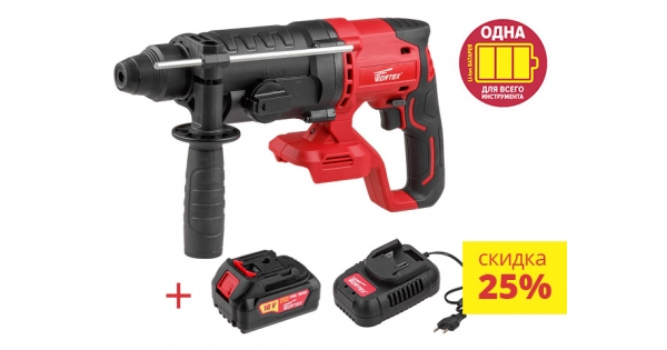 Аккум. перфоратор WORTEX CRH 1824 в кор.+АКЦИЯ (зарядное и аккумулятор в комплекте) (18.0 В, БЕЗ АККУМУЛЯТОРА, 2.4 Дж, вес 2.6 кг,)
