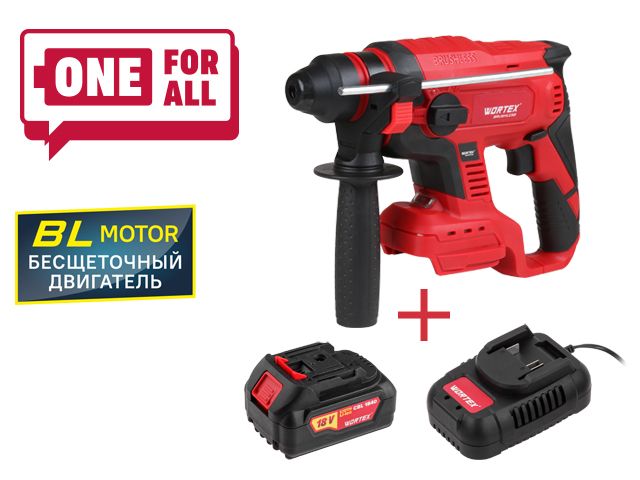 Аккум. перфоратор WORTEX CRH 1820-1 в кор. ALL1 (18.0 В, 1 акк., 4.0 А/ч Li-Ion, 2.2 Дж, вес 1.7 кг,)
