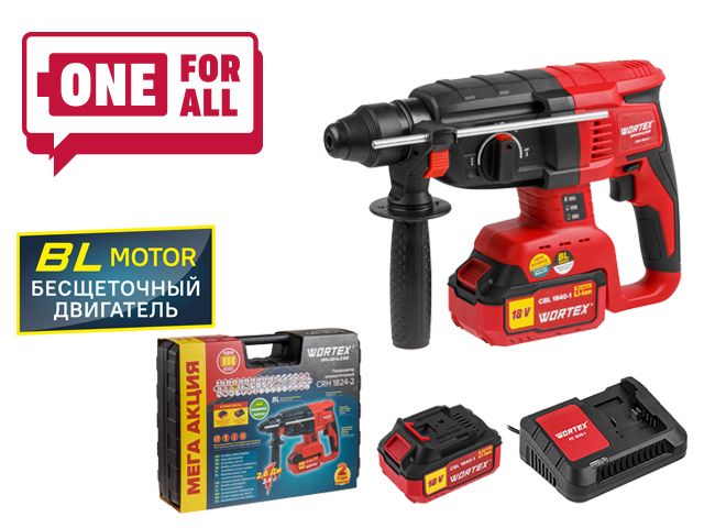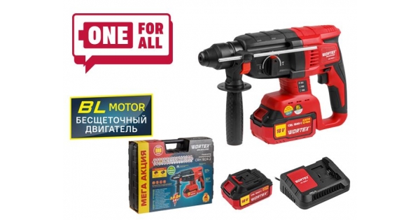 Аккум. перфоратор WORTEX CRH 1824-2 в чем. ALL1 МЕГА АКЦИЯ БЕСЩЕТ., 18 В, 2.6 Дж, 26 мм, 1х4 А*ч (вес 2.4 кг, 4 режима)