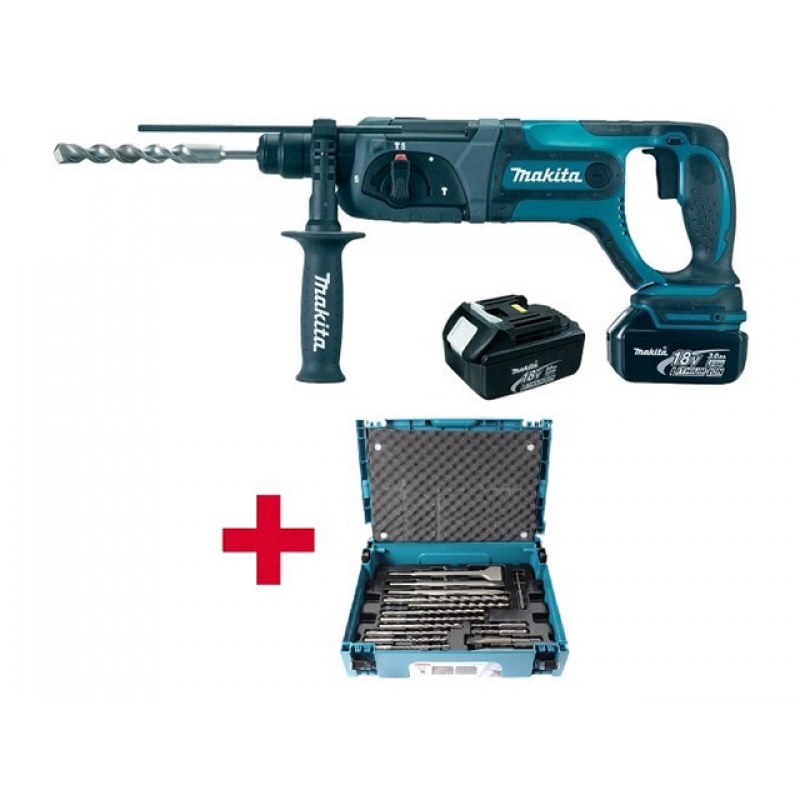 Аккумуляторный перфоратор Makita DHR241RFE с тремя режимами работы - это профессиональный инструмент, предназначенный для сверления отверстий в бетоне. Аккумуляторный перфоратор DHR241RFE ничем не уступает техническими характеристиками своим аналогам среди сетевых перфораторов, однако, его очевидный плюс - отсутствие сетевого шнура, который может существенно мешать при выполнении некоторых видов работ. Как для профессионала, так и для домашнего мастера такой перфоратор будет не заменимым помощником также и в условиях, когда нет возможности подключить обычный перфоратор к электрической сети. Максимальное отверстие, которое можно просверлить этим перфоратором - 20 мм. Этого достаточно для большого спектра монтажных и ремонтных работ. Технические характеристики: