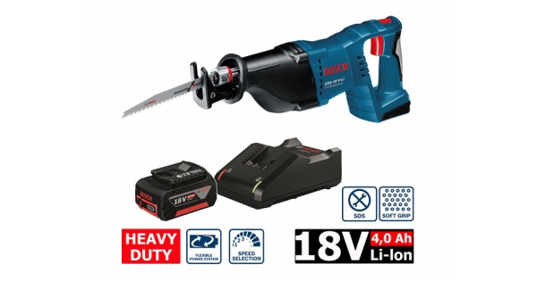 Аккум. сабельная пила BOSCH GSA 18V-LI в кор. (18.0 В, 1 акк., 4.0 А/ч, Li-Ion, дерево до 250 мм, металл до 20 мм)