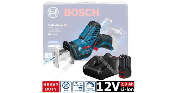 Аккум. сабельная пила BOSCH GSA 12V-14 в кор. (12.0 В, 1 акк., 2.0 А/ч, Li-Ion, дерево до 65 мм, металл до 10 мм)