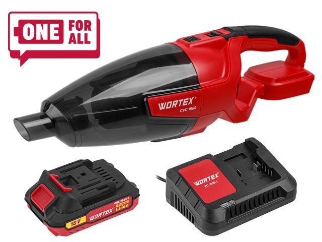 Аккум. пылесос WORTEX CVC 1860 в кор. МЕГА АКЦИЯ ALL1 18 В, автомобильный, 1х2А*ч (18 В, автомобильный, С АКБ 2 А*ч и ЗУ 2 А, 600 мл, 8 кПа, 11.7 л/с)