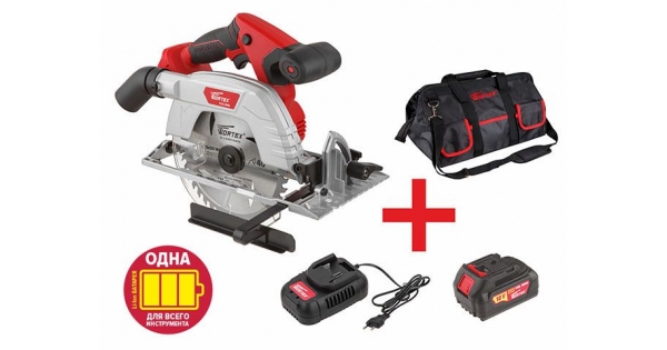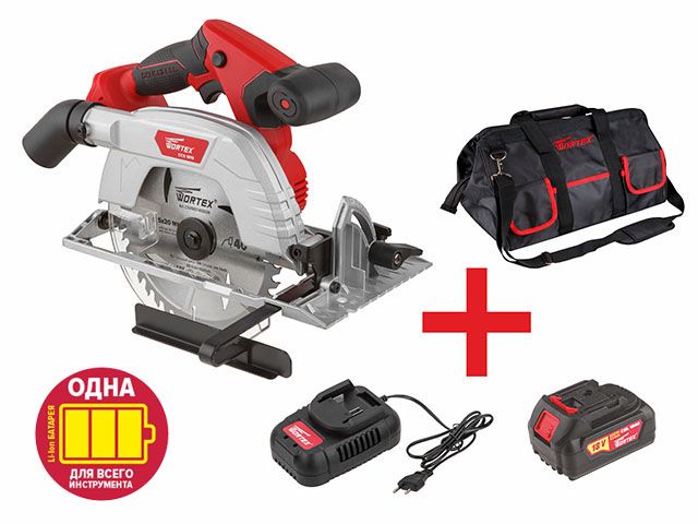 Аккум. циркулярная пила WORTEX CCS 1816 в кор. ALL1 + АКЦИЯ (комплект с акб и зу в сумке со скидкой) (18.0 В, в комплекте с аккумулятором, зу и сумкой
