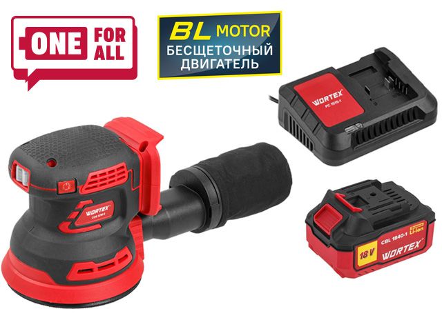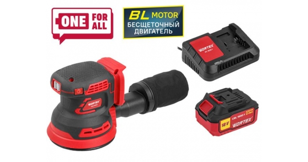 Аккум. эксцентриковая шлифмашина WORTEX COS 1218 E в кор. ALL1 c акб и з/у в кор. БЕСЩЁТ., 18В, 125 (Регул. об., Амплитуда колебаний: 3,6 мм)