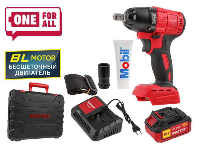 Аккум. ударный гайковерт WORTEX CWR 0118 в кор. ALL1 + АКЦИЯ!(4А акб, з/у, сумка) (WORTEX CWR 0118 в кор. ALL1+З/У+Аккумулятор CBL 1840 ALL1(со скидко