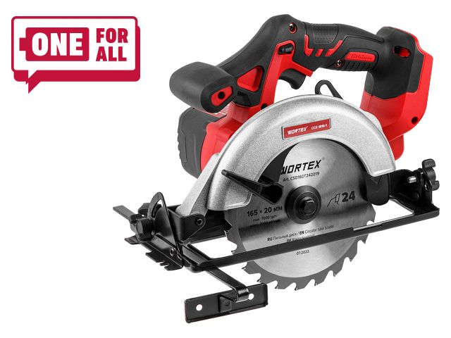 Аккум. циркулярная пила WORTEX CCS 1816-1 в кор. ALL1 SOLO 18 В, 165 мм, до 55 мм