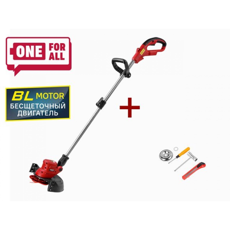 Аккумуляторный триммер предназначен для скашивания травы на участке. Модель оснащена бесщеточным двигателем, за счет чего имеет высокую мощность, долгий срок службы и на 50% сокращает расход энергии аккумулятора! В комплект поставки, помимо катушки с леской, входит нож и дисковый нож, что даёт возможность срезать более жёсткие стебли и подрезать молодые кусты. Преимущество присоединения колёс сделает срез травы более ровным при подрезке газона. Благодаря небольшим размерам конструкция занимает минимум пространства при хранении. Наклонно-поворотная косильная голова - удобство при кошении под развесистыми кустами и подравнивании травы вдоль дорожек. Телескопическая штанга, регулируемая под рост пользователя, обеспечит удобство и максимальный комфорт при эксплуатации.