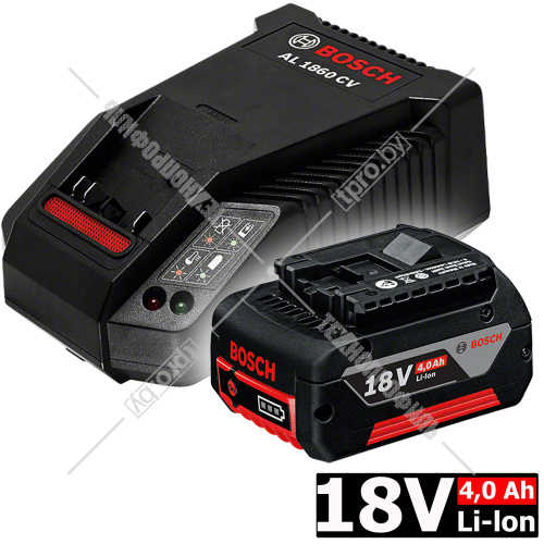 Аккумулятор GBA 18 V 4.0 Ah (-1-) Professional + зарядное AL 1860 CV BOSCH (1600Z00043)