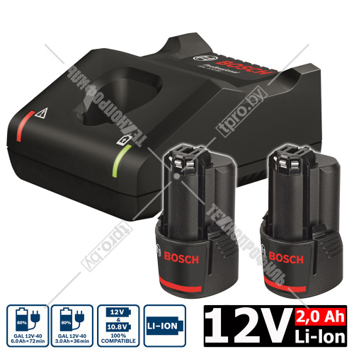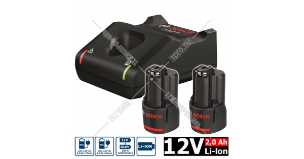 Набор аккумуляторов GBA 12V 2.0 Ah (-2-) + зарядное GAL 12V-40 BOSCH (1600A019R8)