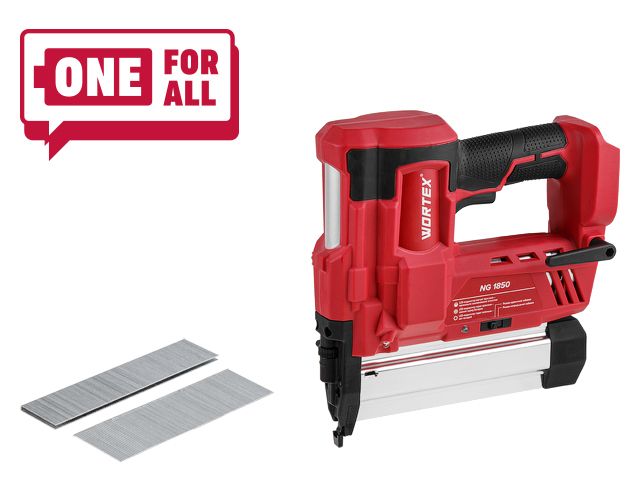 Аккум. гвоздезабиватель WORTEX NG 1850 в кор. ALL1 SOLO (Скоб/гвоздей в минуту: 100, вместимость магазина: 100 шт., тип гвоздей: 18GA, длина: 15-50 мм