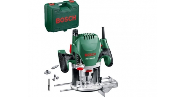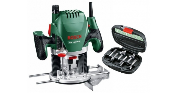 Фрезер вертикальный BOSCH POF 1400 AСE в чем. + набор фрез (1400 Вт, цанга 6/8 мм, 28000 об/мин, регул. об.)
