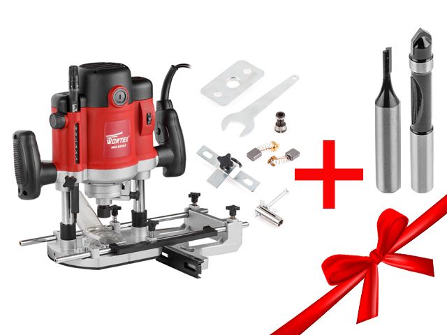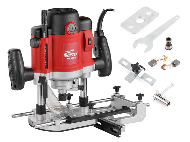 Фрезер вертикальный WORTEX MM 5519 E в кор. + аксессуары + АКЦИЯ! (2 фрезы) (2000 Вт, цанга 8/12 мм, 8000-23000 об/мин, регул. об.)