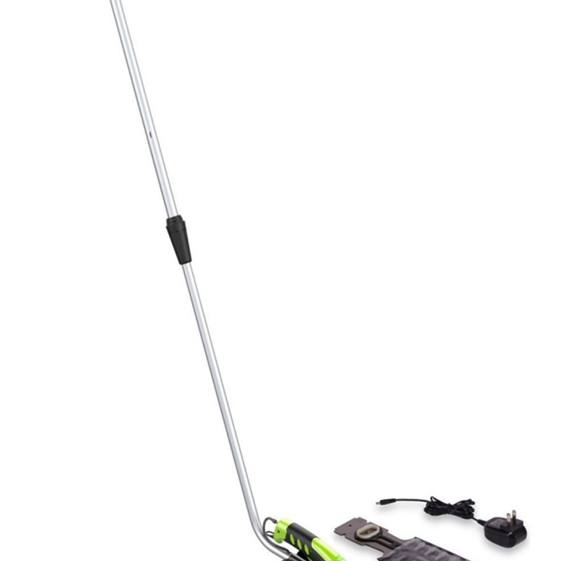 Применяется для финальной обработки газона или кустарника. Для этого в этом комплекте электро ножниц предусмотрено 2 вида ножей: для травы 8 см и кустарника 16 см. Для удобства стрижки газона предусмотрена специальная штанга-удлинитель с колесиками у основания. Смена оснастки не требует инструмента. Вес самого инструмента составляет всего 700 грамм (без штанги удлинителя) — это одно из самых легких и компактных устройств такого рода.