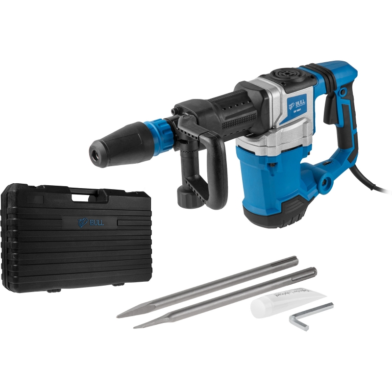 Отбойный молоток предназначен для дробления бетона, слома бетонных покрытий, проделывания проёмов. Модель обладает удобным 12-позиционным расположением долота в патроне, что особенно актуально при работе с лопаточными зубилами. Отбойный молоток оснащен регулировкой скорости удара. Универсальный патрон инструмента SDS-max позволяет надежно фиксировать оснастку. Наличие антивибрационной рукоятки делает работу менее утомительной для оператора. Корпус из магниевого сплава защищает внутренние элементы инструмента от механических воздействий, а повышенная прочность ударных частей редуктора и высокотемпературная смазка обеспечат продолжительный срок службы инструмента. Отбойный молоток оснащен морозоустойчивым резиновым кабелем, для комфортной работы в любых температурных условиях и имеет общую длину равную 5 метрам. Поставляется в кейсе.