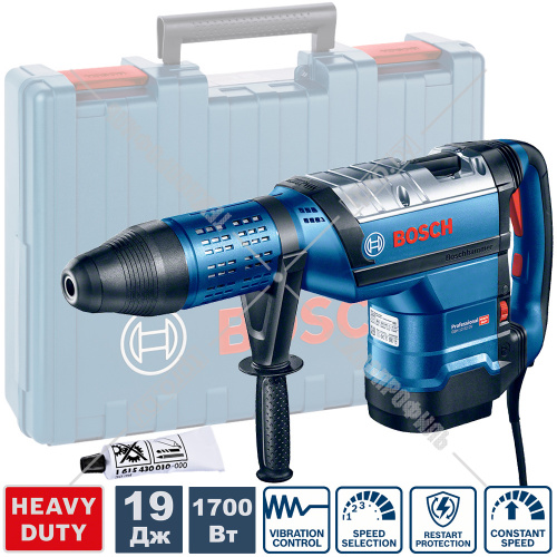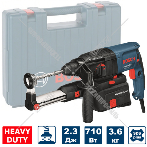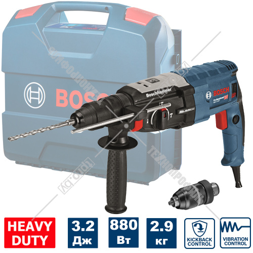 Перфоратор BULL BH 2601 в чем. (800 Вт, 2.9 Дж, 4 реж., патрон SDS-plus, БЗП в комплекте, вес 3.3 кг)
