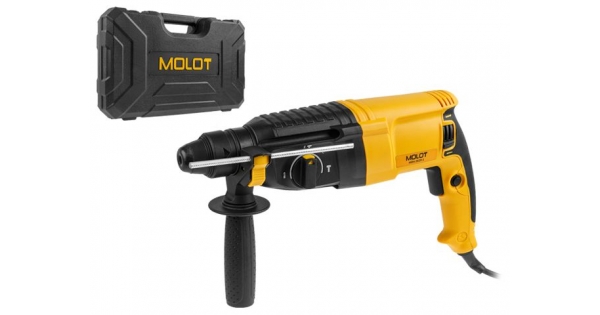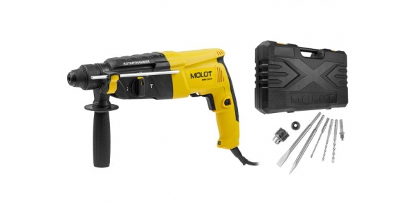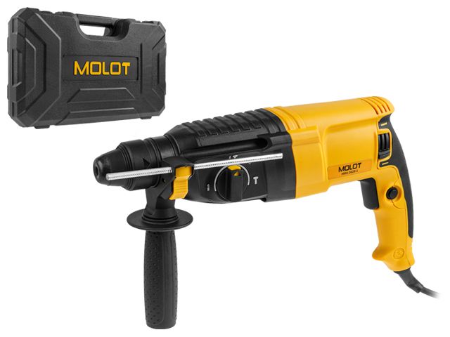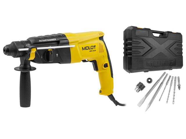 Перфоратор MOLOT MRH 2629 в чем. + (2 зубила, 3 сверла) (800 Вт, 3.0 Дж, 3 реж., патрон SDS-plus, вес 3.0 кг)