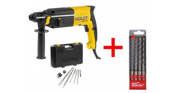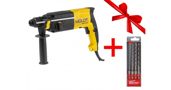 Перфоратор MOLOT MRH 2428 в чем. + (2 зубила, 3 сверла) + АКЦИЯ! Набор буров Wortex в подарок! (Набор буров (сверл) SDS-plus 4 шт. WORTEX в подарок!)