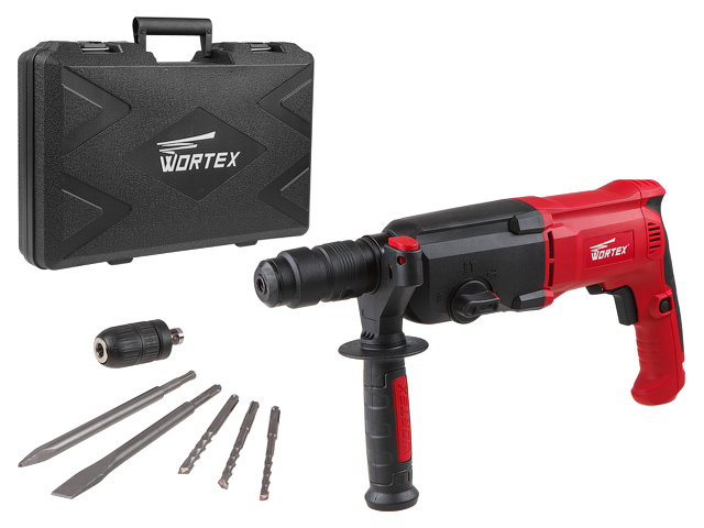 Перфоратор WORTEX RH 2427 X в чем. + (2 зубила, 3 сверла) (900 Вт, 2.8 Дж, 3 реж., патрон SDS-plus, быстросъемн., БЗП в комплекте, вес 3.1 кг)