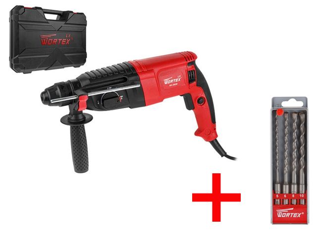 Перфоратор WORTEX LX RH 2628 в чем. + АКЦИЯ!(буры в подарок) (+ Набор буров (сверл) SDS-plus 4 шт. WORTEX в ПОДАРОК!)