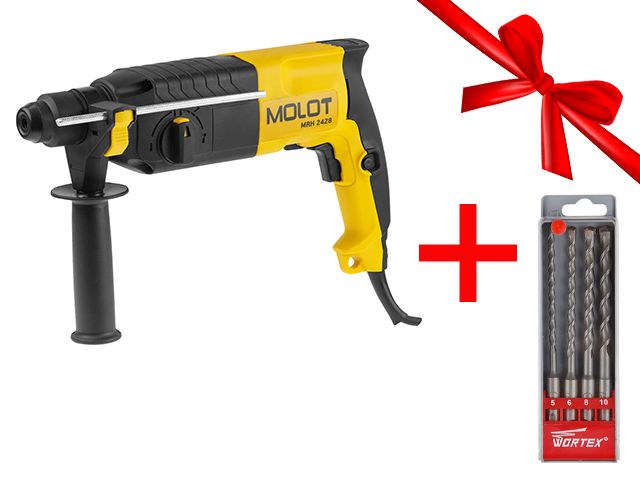 Перфоратор MOLOT MRH 2428 в чем. + (2 зубила, 3 сверла)+ АКЦИЯ! Набор буров в подарок! (Набор буров (сверл) SDS-plus 4 шт. WORTEX в подарок!)