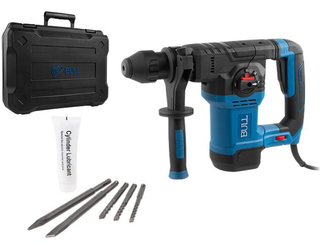 Перфоратор BULL BH 3601 в чем. + АКЦИЯ (3 бура SDS-Plus 8,10,12 DIAGER в подарок) (1500 Вт, 4.5 Дж, 4 реж., патрон SDS-plus, вес 5.7 кг. 3 бура SDS-Pl