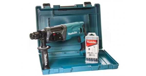 Перфоратор MAKITA HR 2470 X15 в чем. + набор буров (780 Вт, 2.7 Дж, 3 реж., патрон SDS-plus, вес 2.6 кг)