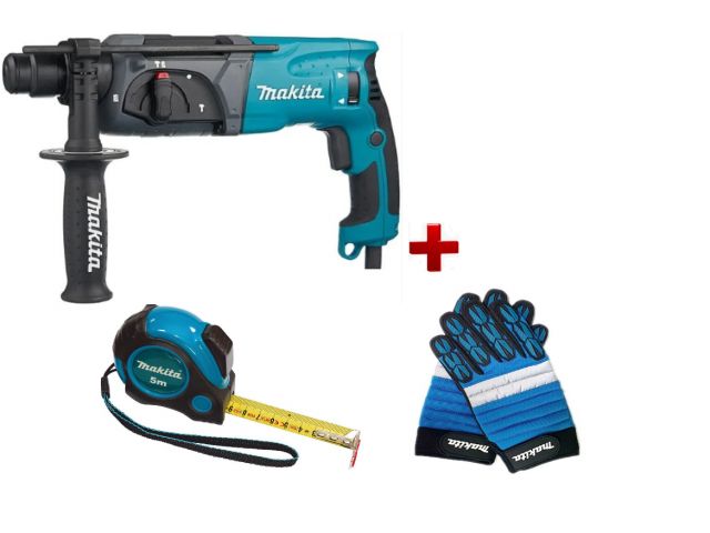 Перфоратор MAKITA HR 2470 в чем. + АКЦИЯ Рулетка + Перчатки "Механик" (780 Вт, 2.7 Дж, 3 реж., патрон SDS-plus, вес 2.4 кг+АКЦИЯ Рулетка + Перчатки "М