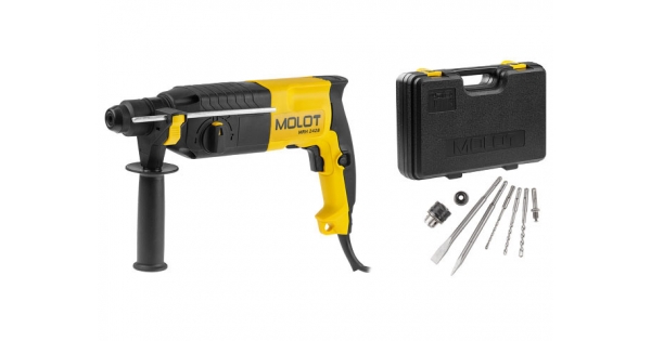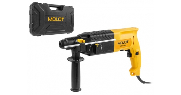 Перфоратор MOLOT MRH 2428 в чем. + (2 зубила, 3 сверла) (700 Вт, 2.6 Дж, 3 реж., патрон SDS-plus, вес 2.8 кг)
