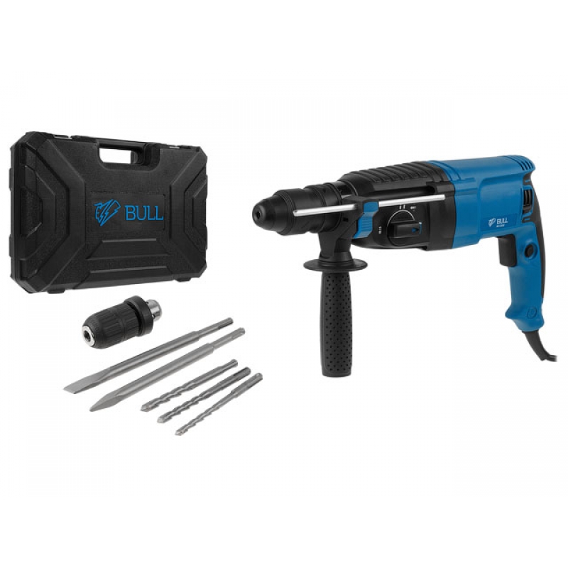 Мощный двигатель перфоратора обеспечивает высокую производительность инструмента. Наличие патрона SDS-plus в перфораторе позволяет сменить осанастку легко и быстро. Перфоратор имеет 4 режима работы: сверление, сверление с ударом, долбление, а также режим поворота долота. Переключение между режимами осуществляется с помощью специального переключателя. Перфоратор оснащен функцией реверса для легкого выкручивания сверла из материала.