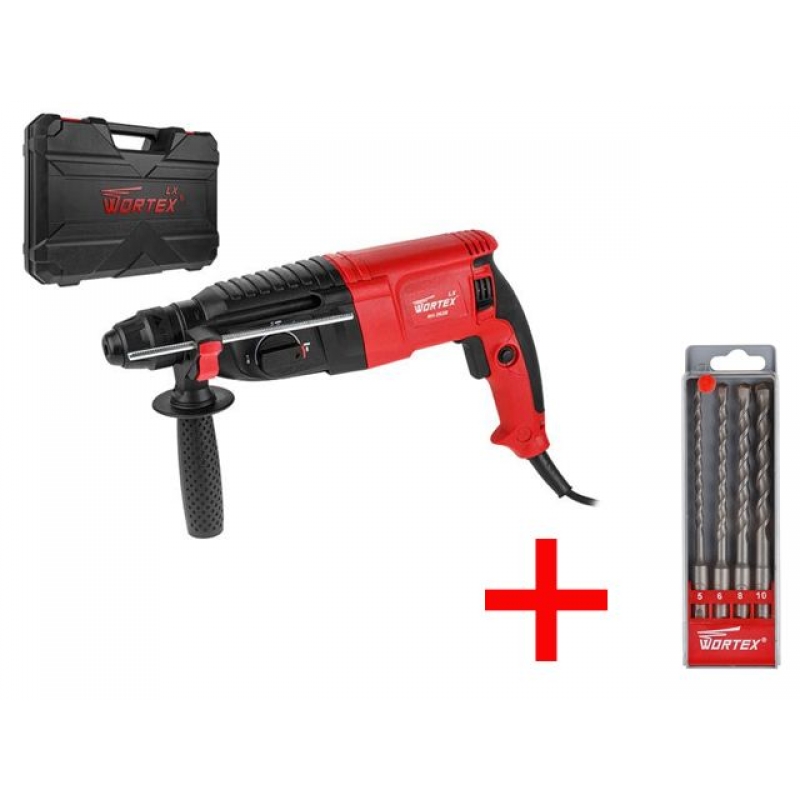 Гарантийный срок - 2 года. Набор буров (сверл) SDS-plus 4 шт. WORTEX в ПОДАРОК!