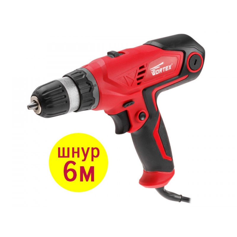Данная дрель-шуруповерт оснащена быстрозажимным полуметаллическим патроном, имеет двухскоростной редуктор, быструю замену щёток, эргономичную рукоятку, сетевой шнур 6 м.