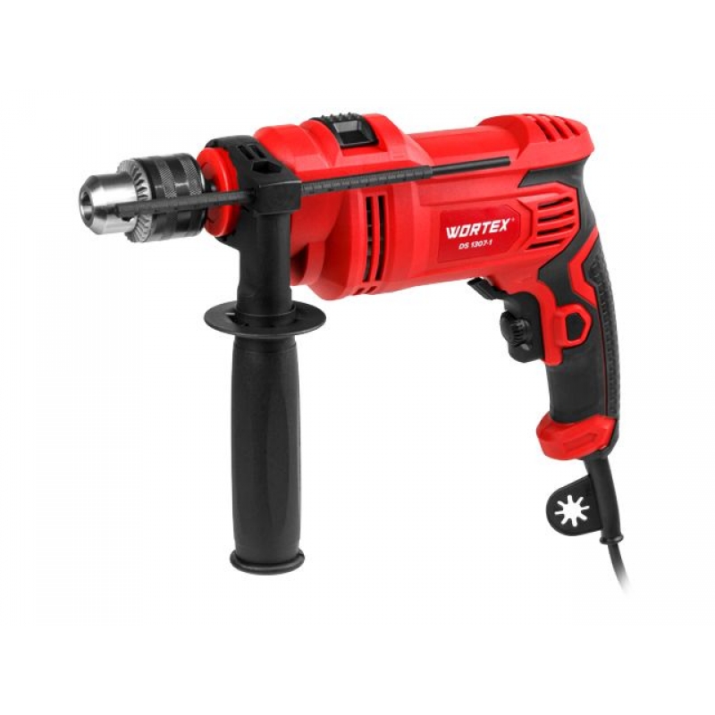 Дрель имеет медную обмотку двигателя и металлический сверлильный патрон. Дополнительная рукоятка обеспечивает надежный захват, имеется регулировка скорости, ограничитель глубины, реверс и блокировка кнопки включения.