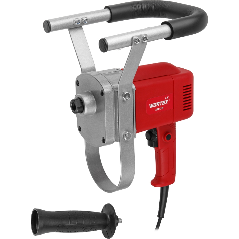 Инструмент оснащен широкой скобовидной рукояткой , хорошо знакомой на рынках СНГ. Управление осуществляется с помощью выключателя со ступенчатым регулятором оборотов и кнопкой фиксации для непрерывной работы. Регулировка скорости позволяет начать смешивание на низких оборотах и избежать разбрызгивания смеси.
