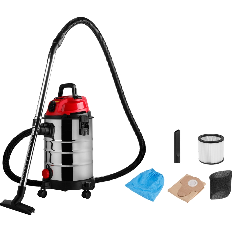 Несколько степеней фильтрации обеспечивается за счет фильтра тонкой очистки (HEPA), который входит в комплект поставки. Возможно также использовать с одноразовыми бумажными мешками. Пылесос также оснащен специальным отверстием для слива воды из бака. А легкий и прочный корпус из нержавеющей стали обеспечит долгий срок службы инструмента. Присутствует функция выдува, а также телескопическая трубка. Обладает раздвижной телескопической трубкой и трехпозиционным переключателем.