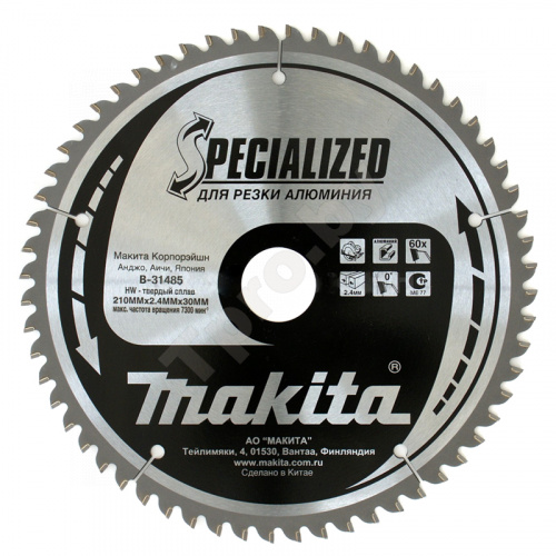 Пильный диск по алюминию 210х30 мм Z60 Specialized MAKITA (B-31485)