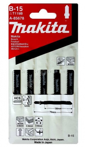 Пилка для лобзика B-15 по дереву (5 шт) MAKITA (A-85678)