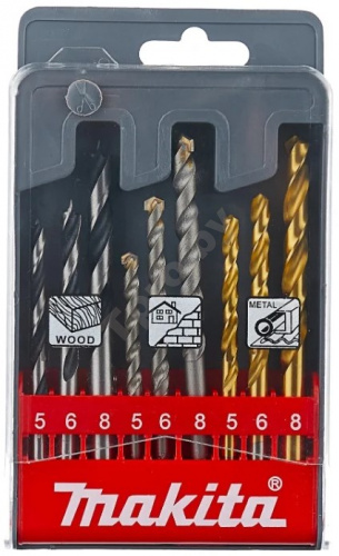 Набор сверл 5/6/8 мм по металлу/дереву/камню (9 шт) Makita (D-08660)