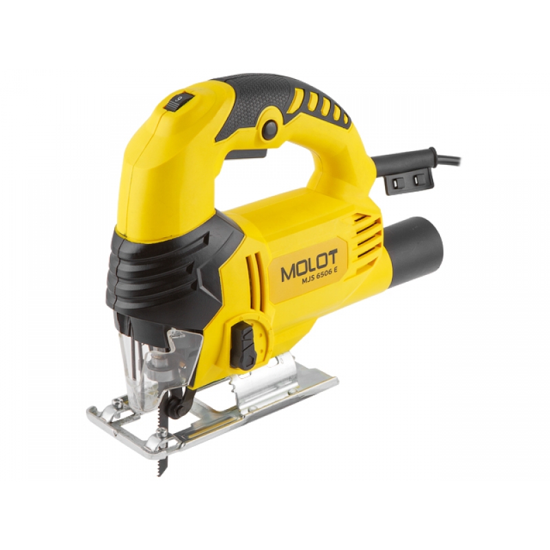 Лобзик оснащен удобной прорезиненной рукояткой. Предусмотрен быстрозажимной патрон для быстрой замены пильных полотен. Наличие маятникового движения позволяет производить быстрые и ровные пропилы. Стальная подошва регулируется под разными углами. Возможно подключение пылесоса. Регулировка оборотов позволяет использовать лобзик для реза различных материалов.