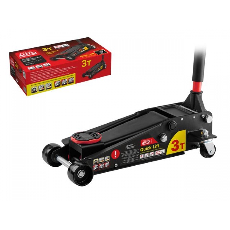 Назначение: профессиональный домкрат гидравлический подкатной с ручным приводом, предназначенный для поднятия грузов на высоту. Отличается простотой обслуживания и надежностью в эксплуатации, позволяет при небольшом рабочем усилии осуществлять плавный подъем груза и его точную фиксацию на заданной высоте. Модель оснащена двухштоковым механизмом быстрого подъема (QUICK LIFT) для поднятия опорной площадки на максимальную высоту за 7 полных качков рукоятью. Подходит для использования на станциях техобслуживания и шиномонтажа,