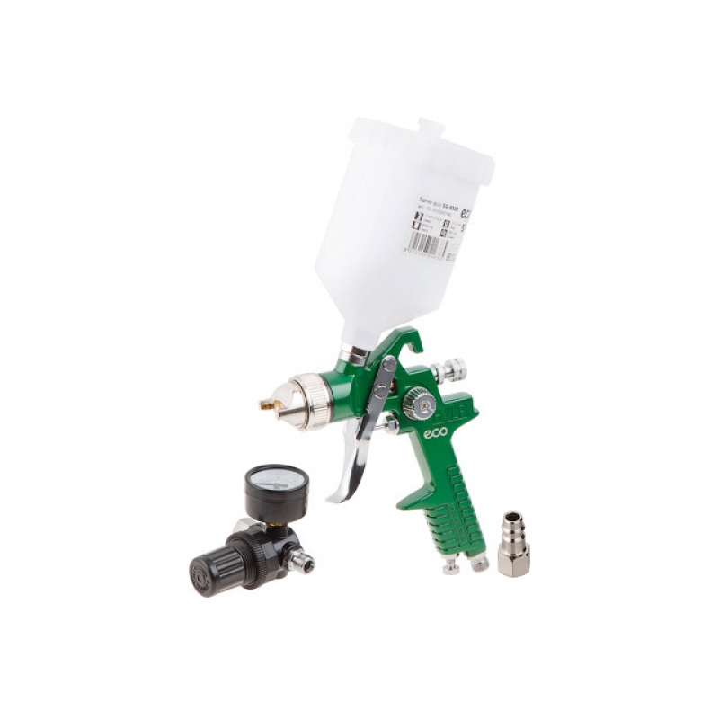 Краскораспылитель HVLP с набором регулировок. Регулятор с манометром в комплекте позволяет настроить работу краскораспылителя максимально точно.