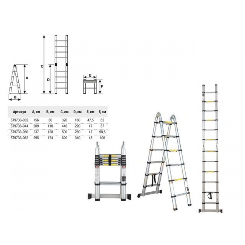 Модификация (высота, см): двусторонняя стремянка (295 см);