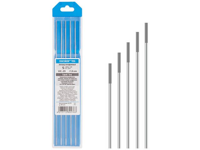 Электрод вольфрамовый серый WC-20, Ф 1,6 мм (набор 5 шт) SOLARIS
