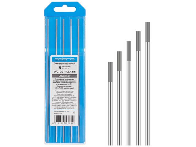 Электрод вольфрамовый серый WC-20, Ф 2,4 мм (набор 5 шт) SOLARIS