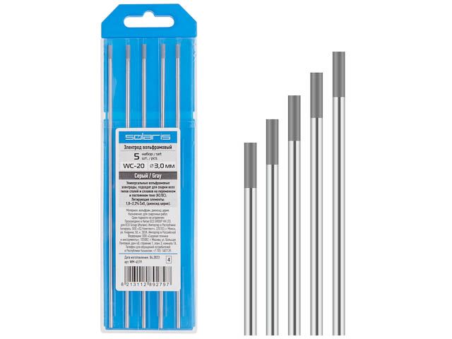 Электрод вольфрамовый серый WC-20, Ф 3,0 мм (набор 5 шт) SOLARIS